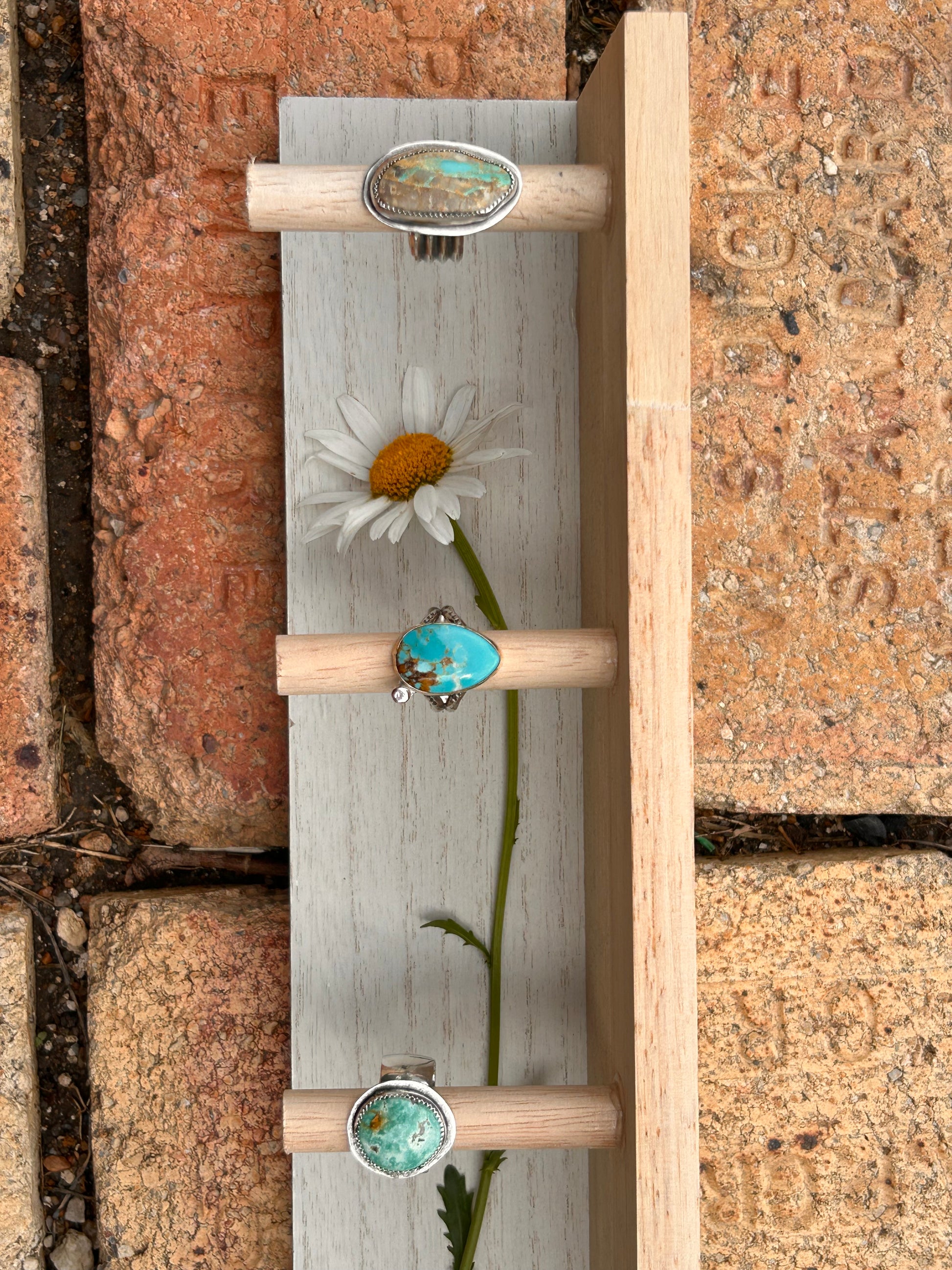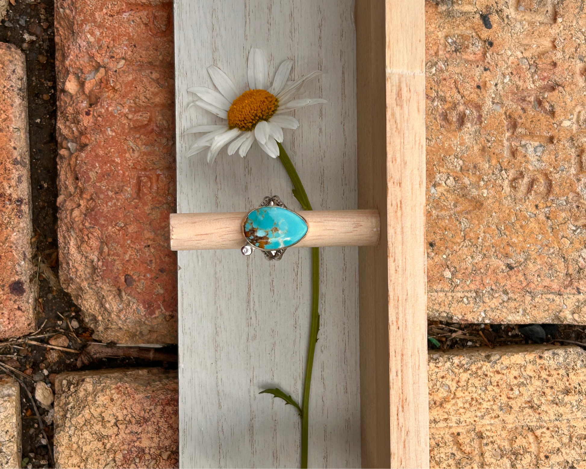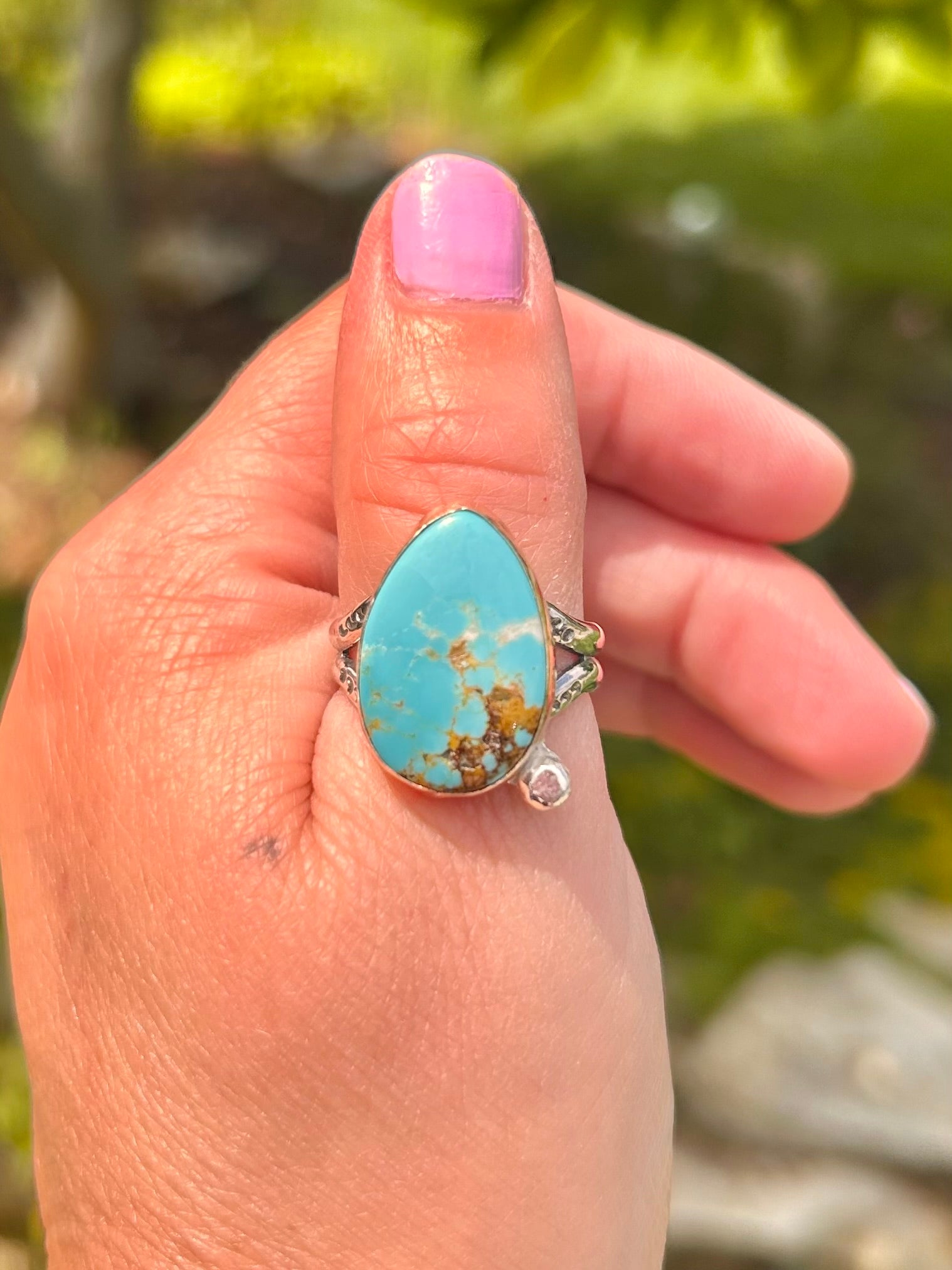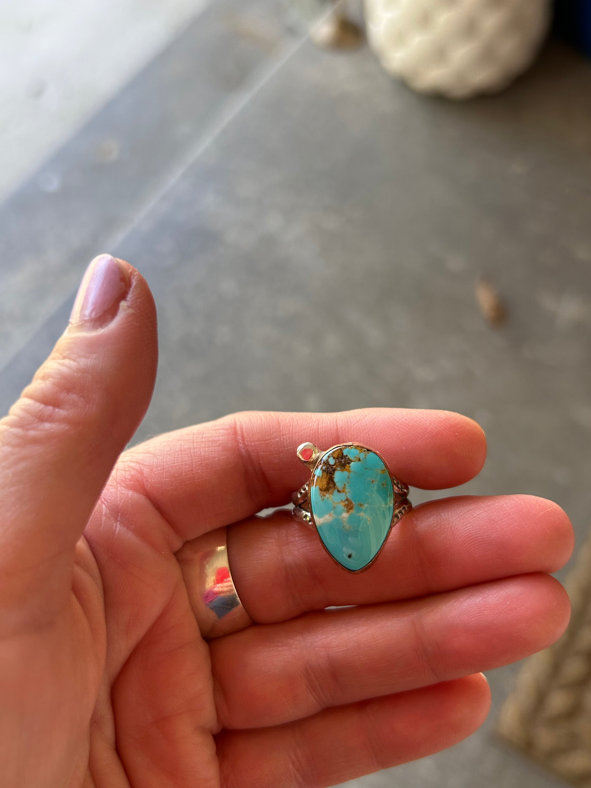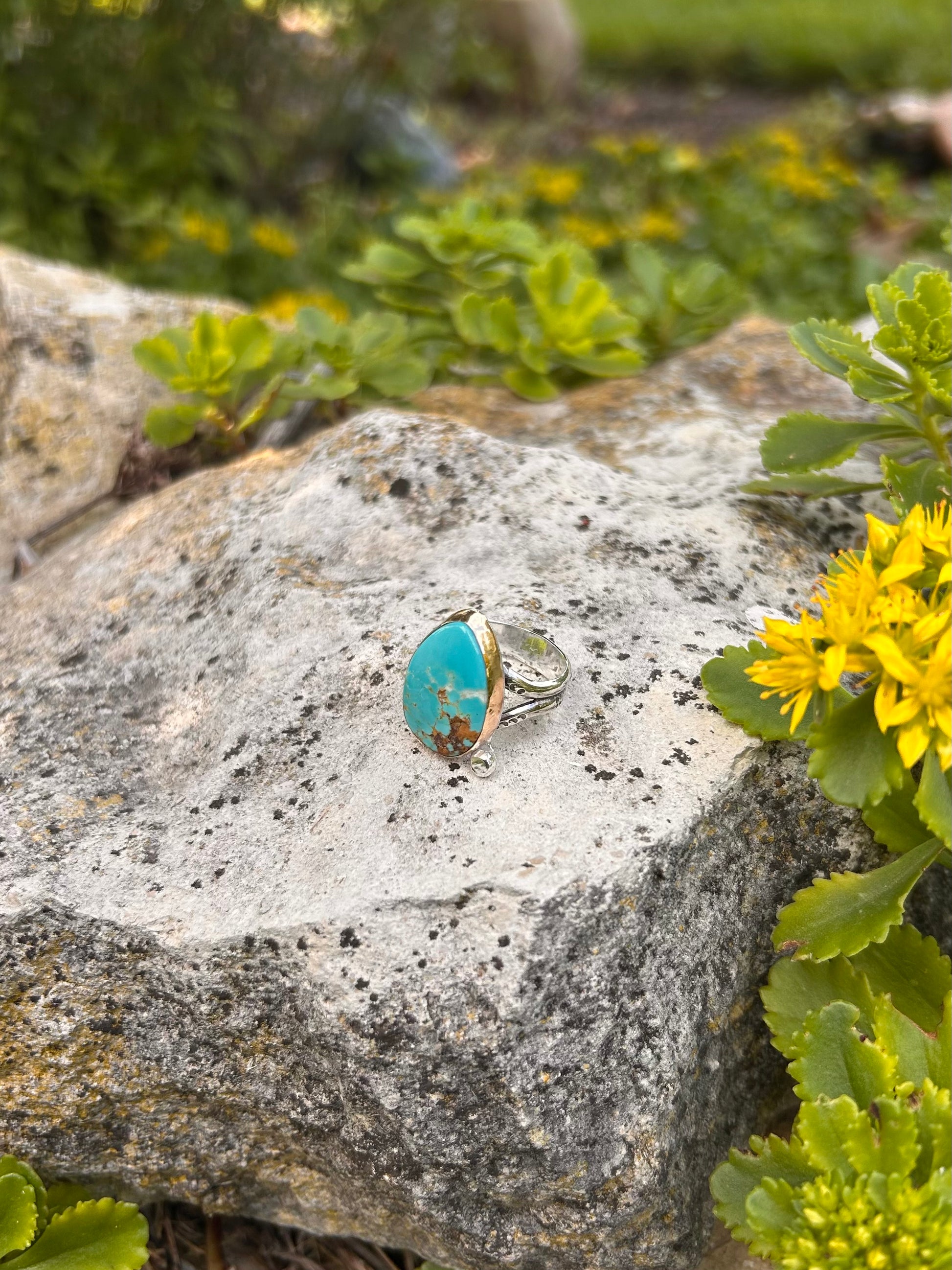 I can't get over this beautiful Ocean Blue Royston Turquoise - set in Sterling Silver, sits on a hand-stamped band and wrapped in 14/20 Gold-Filled bezel.