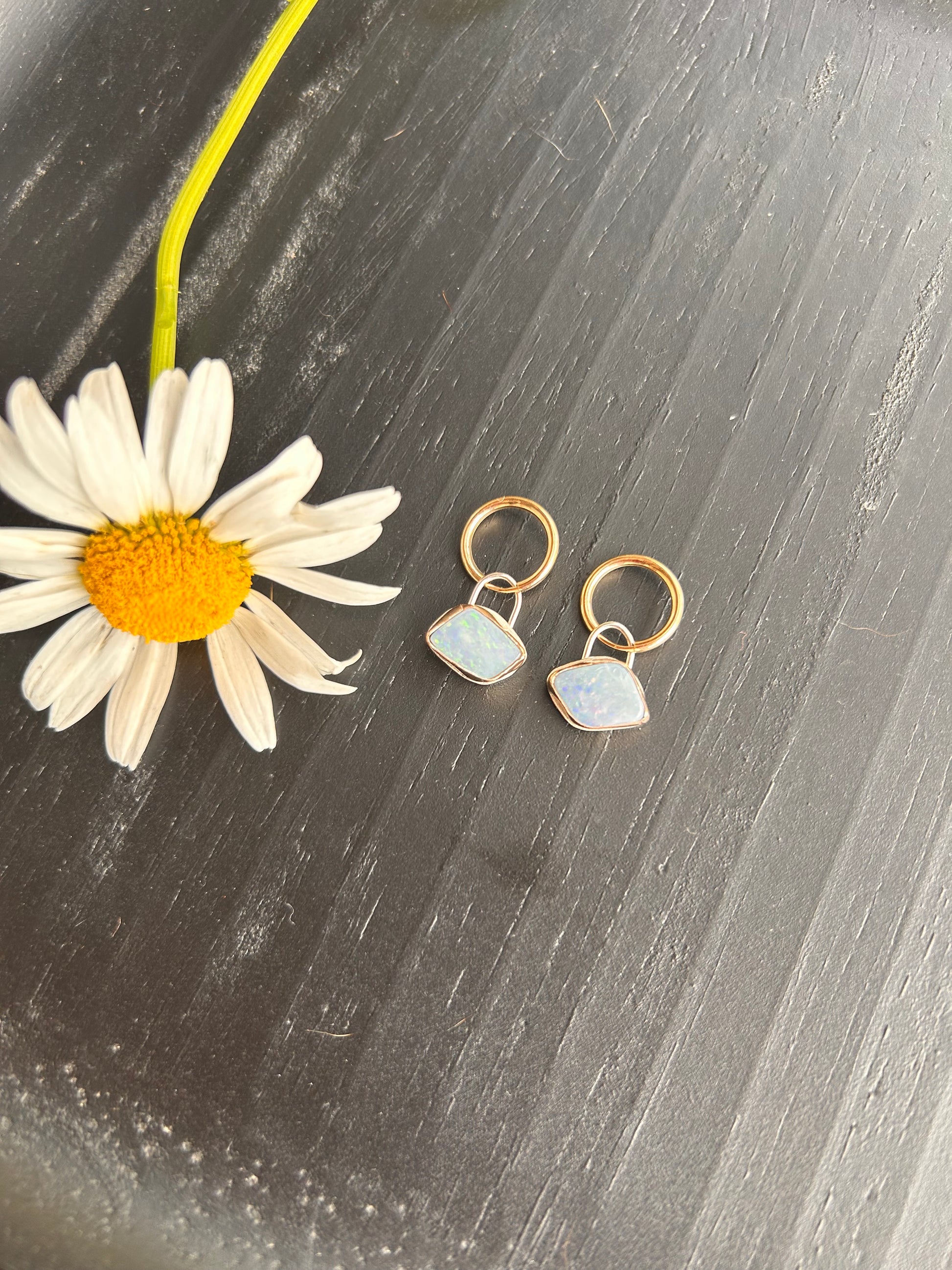 Gorgeous Opal Doublets wrapped in 14/20 Gold-Filled to give it that something extra, and GF hoops.
