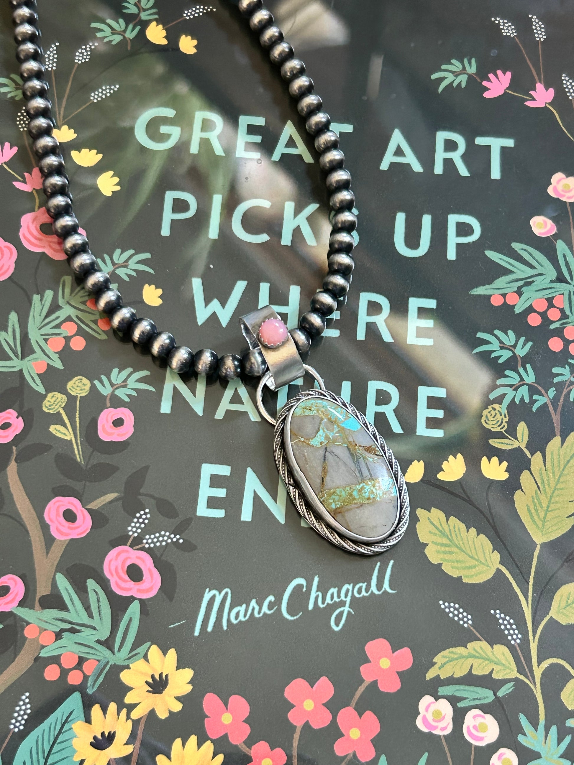 Royston Ribbon & Pink Conch - Man oh man what a beautiful pair. Set in Fine & Sterling Silver. Bail will fit up 10” Shown on 8” Pearls 18” with extender. The listing is for both but if you’re only interested in the Pendant I will sell separately. Please reach out.