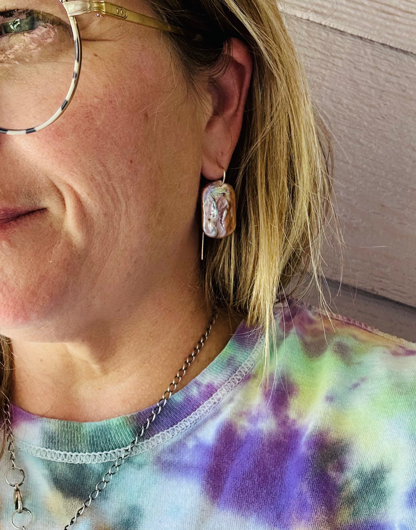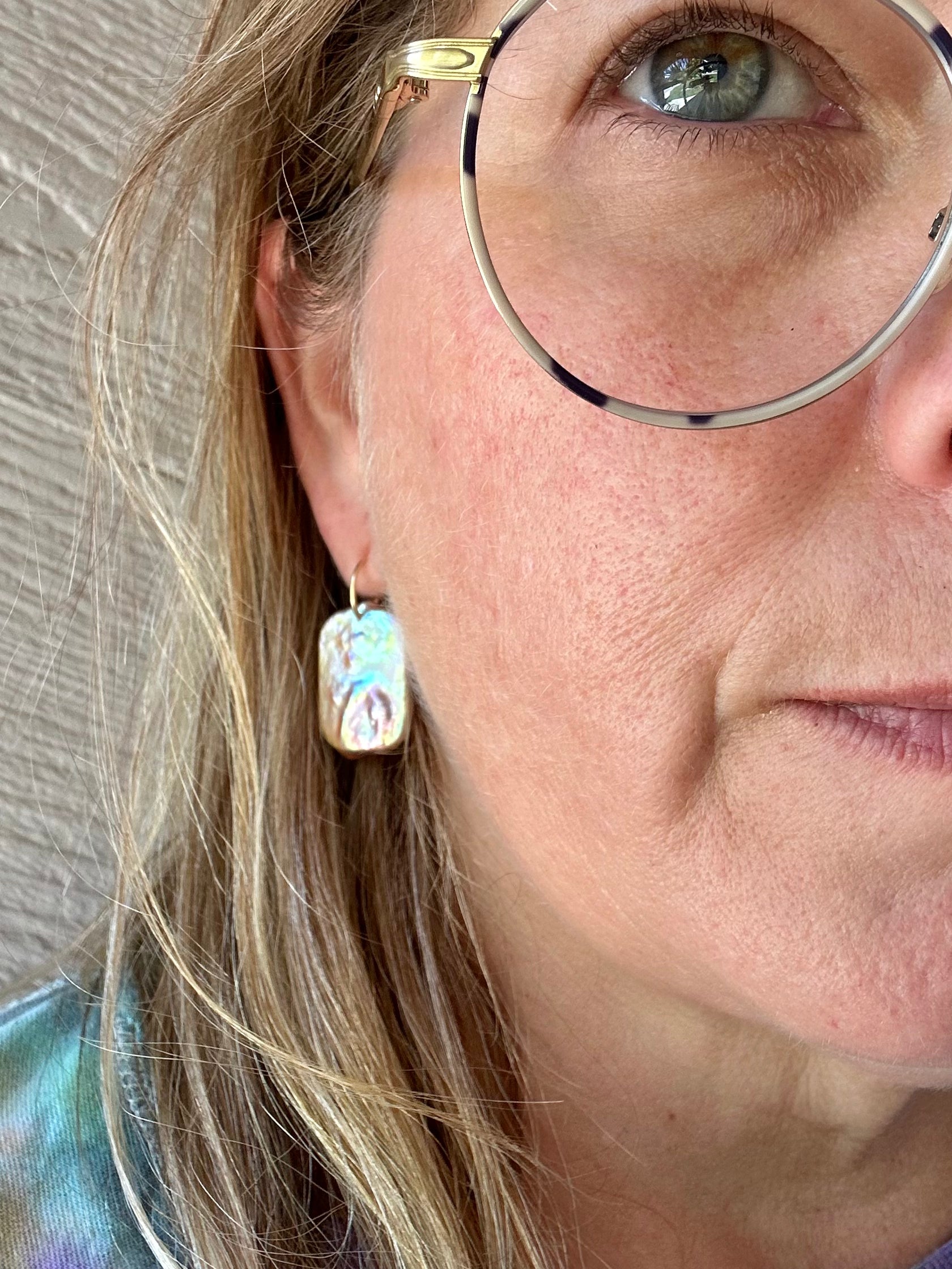 Some of the most gorgeous Pearls I’ve seen! They sit on 14/20 Gold-Filled wire made long enough you need not worry they’ll slip out & I wanted to give them a little elegant look.