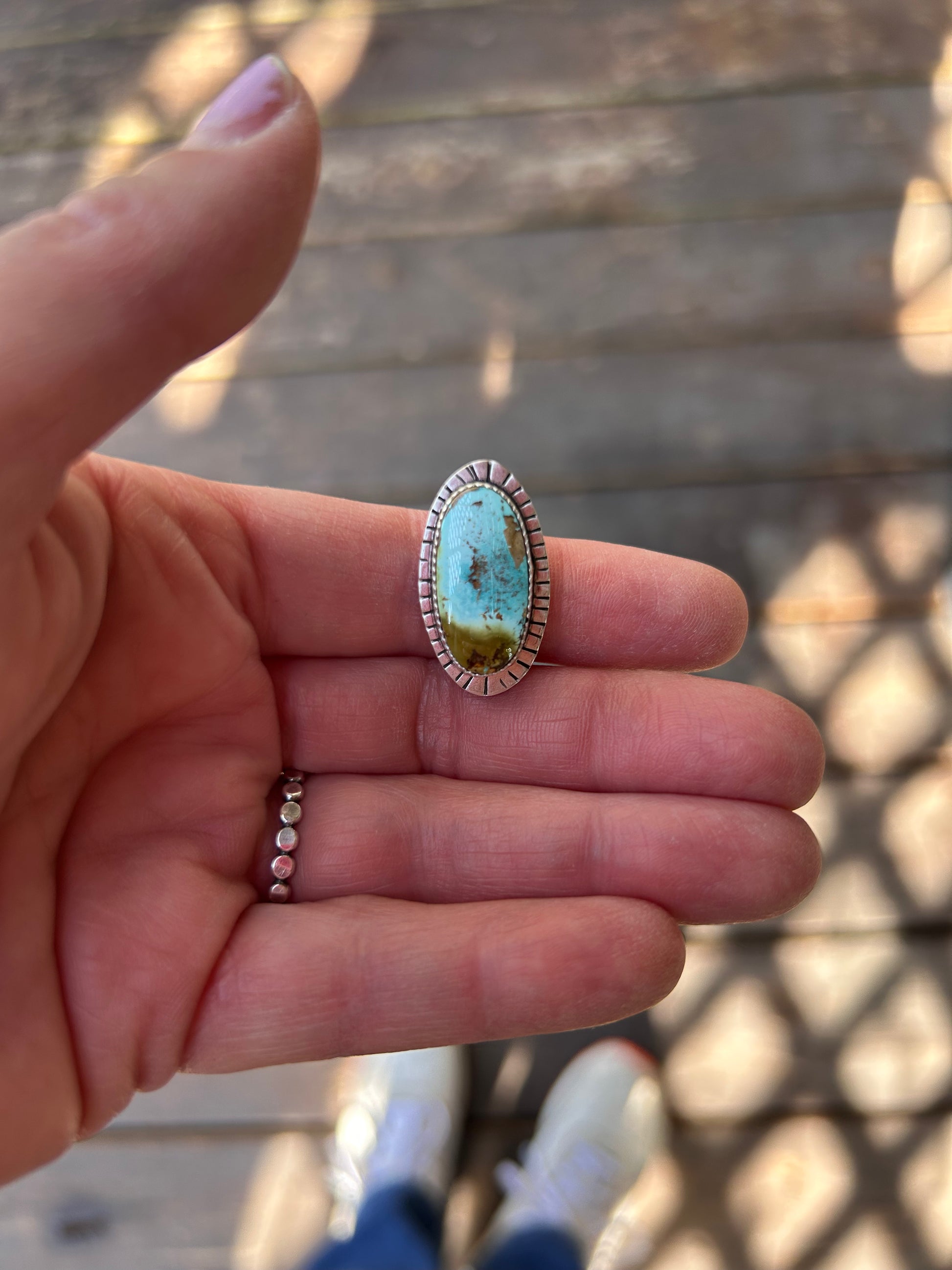 Unique Pilot Mountain Stone set in Fine & Sterling Silver with a stamped Sun Ray design.